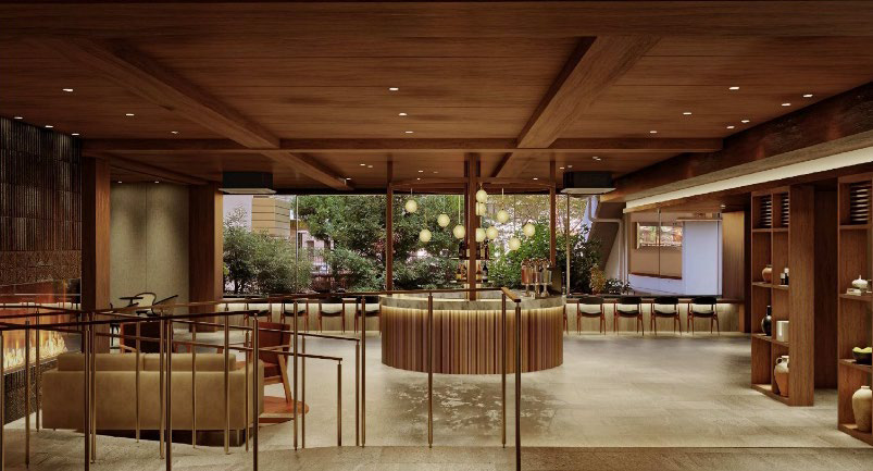 顧客動線を丁寧に分析し、チェックイン/チェックアウト時のストレスを最小化するレイアウトへ一新。段差解消や視認性の高いサインへの更新、荷物動線の分離等によりアクセシビリティを強化。滞在時には、周辺地域の自然や文化を想起させるマテリアルと照明設計により、ラウンジでの滞在価値を高めます。