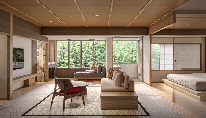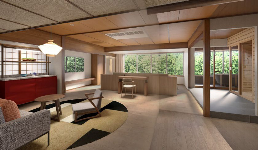 顧客ニーズの高い客室内露天風呂とプライベートサウナを備えたスイートルームを新設。プライベート性と温泉の魅力を同時に楽しめる客室カテゴリーを拡充し、平均単価の向上と長期滞在の促進を図ります。
